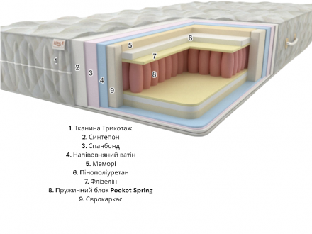 Матрас Premium Ямайка Pocket Spring 80х190х26 см Sonel